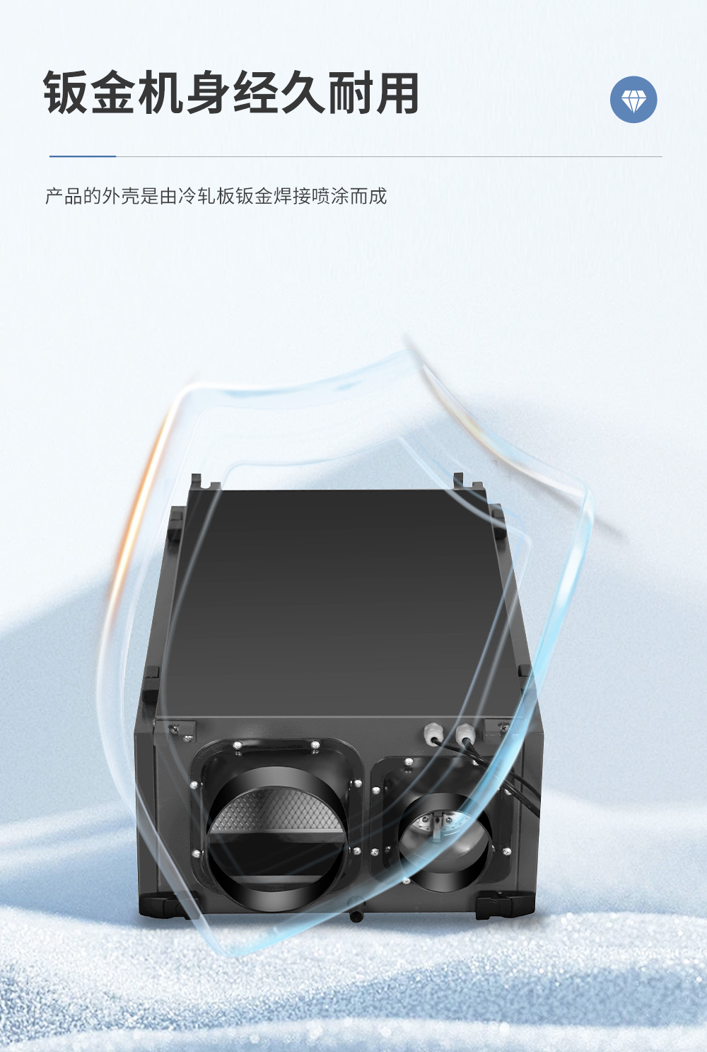 4. 新風(fēng)除濕機(jī)的除濕系統(tǒng)與新風(fēng)系統(tǒng)聯(lián)動(dòng)使用,除濕的同時(shí)確保環(huán)境空間空氣的潔凈。