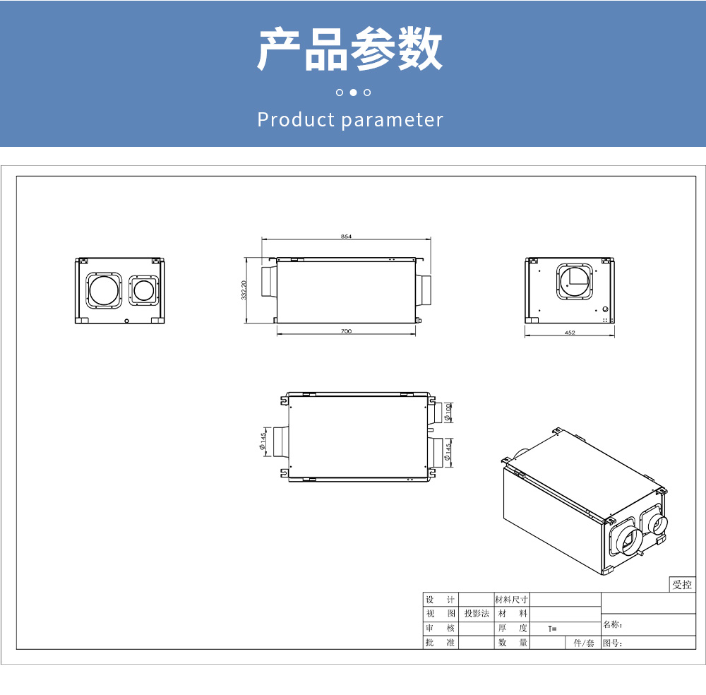 3. 人性化設(shè)計(jì),新風(fēng)引進(jìn)口可前后出風(fēng)或側(cè)進(jìn)風(fēng)運(yùn)行,方便送風(fēng)管道走向的布局。